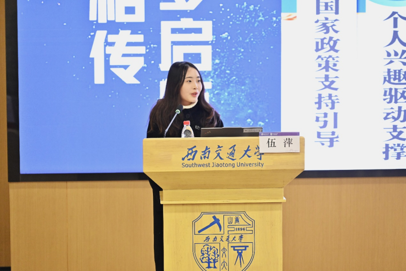伍萍同学则重点进行了其科创经历和个人学习方法的分享。她详细介绍了自己参与科研项目的过程,以及如何在其中锻炼专业技能、团队合作和自主学习能力。其次,她强调了反思和适时调整学习方法的重要性,提醒同学们要在大学的学习中追求质量而非数量,并建议同学们养成勤做笔记、积极复习的习惯。此外,她倡导同学们紧跟国家发展步伐,将个人兴趣与国家需求相结合,提升科技创新能力,为国家贡献青春力量。