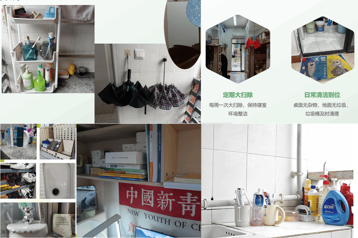 本次宿舍文化节主要考察寝室卫生、寝室安全、寝室装潢与寝室成员风貌四个方面。