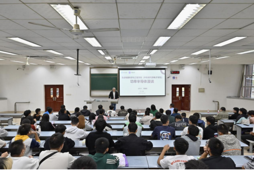 讲座伊始,刘院长简要回顾了功率半导体技术的发展历程,详细介绍了功率半导体在轨道交通、电动汽车、可再生能源、工业自动化、通信系统等领域的广泛应用。他向同学们深入浅出地讲解了功率半导体的基本原理、发展目标、技术发展趋势以及面临的挑战。刘院长指出,功率半导体是以设计、制造、封装为一体的,因此需要同学们具备完整的知识体系以及较强的实践动手能力。他强调,大功率半导体是一个综合性和交叉性很强的学科,需要同学们融会贯通,善于运用多学科知识解决问题。此外,刘院长还对功率半导体材料的最新研究进展进行了阐述,指出,半导体行业发展迅速,材料革新速度快,以碳化硅、氮化镓和金刚石等为代表的新材料具有广泛的应用前景。
