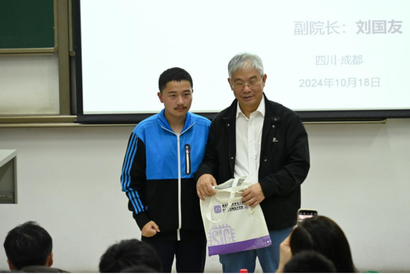 讲座结束后,学生代表江仁熠向刘院长送上了温馨的小礼物,表达同学们对刘院长的感谢。通过此次讲座,同学们纷纷表示自己受益匪浅,也深刻地认识到自己所需要学习的知识很多。他们将铭记刘院长的教诲,努力学习,不断探索,为实现个人梦想和国家发展贡献自己的力量。