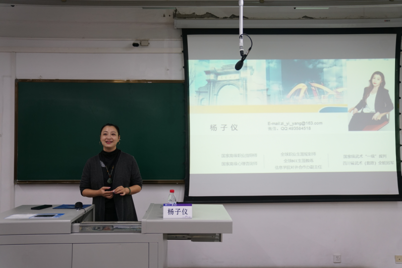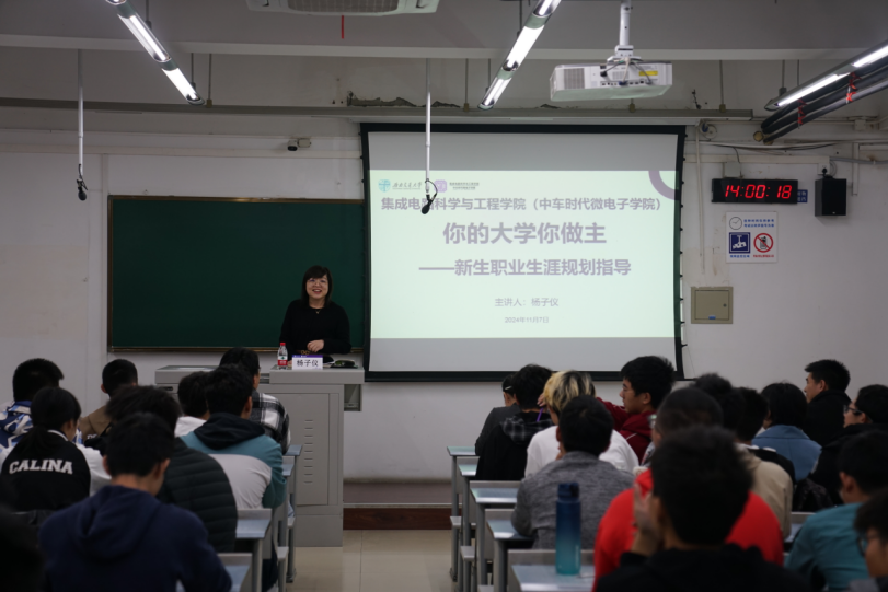讲座伊始,杨子仪老师通过一则短片引发了同学们对于未来的思考,如大学四年应该如何度过,就业与深造究竟哪个好?如何兼顾课堂学习与社会实践活动,以及如何通过参与科研项目和实习实践来丰富个人简历等,进而凸显了大学生涯规划的重要性。她鼓励同学们从大一开始主动构建自己的生涯规划蓝图,通过不断学习和实践,提升自身的核心竞争力。