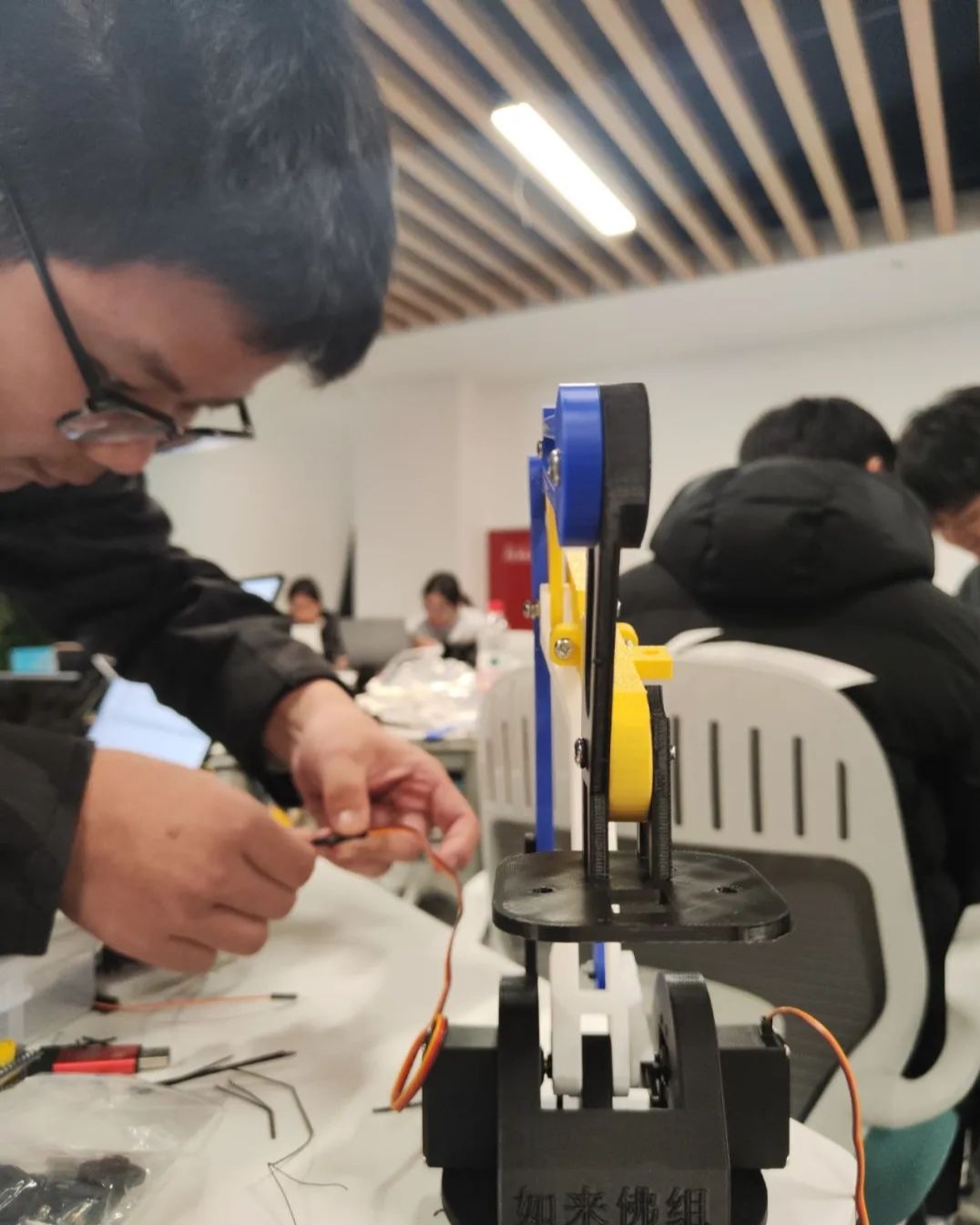 17 日早上 7 点 30 分,当工作人员抵达现场时,已有不少同学提前开工。活动正式开始后,现场紧张而有序,同学们争分夺秒,充分利用 8 个小时的创作时间,将创意与技术融入作品之中。与此同时,集成电路学院 FablabSIC(307)实验室全面开放,为同学们提供了丰富的实验资源和设备支持。