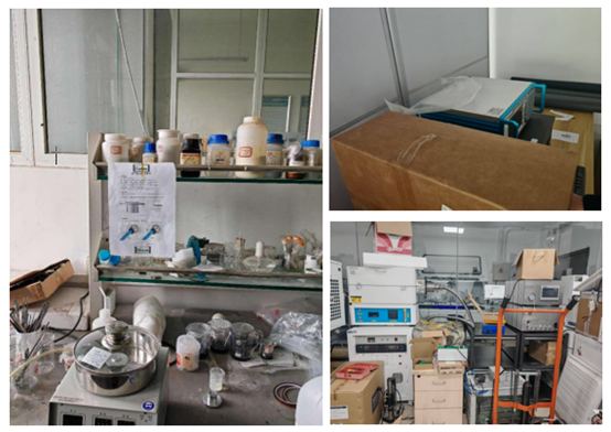检查发现,实验室还存在“注意事项”张贴形式不固定、易丢失,实验记录本填写不及时,实验室杂物未及时清理、随手扔,存放过多易燃物品(如废弃纸箱),缺少灭火器等问题。