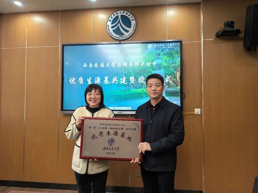 此次招生宣传之旅,"优质生源基地" 授牌活动成为一大亮点。王燕与陈健代表437bwin必赢国际,先后走进 7 所重点中学,举行授牌仪式。在授牌现场,双方围绕人才培养、科技创新、招生合作等内容展开深入交流。这一系列授牌举措,旨在搭建高校与中学之间的紧密联系,为优秀学子从中学到大学的成长之路提供坚实保障,助力更多湖湘学子在更广阔的平台上绽放光彩。