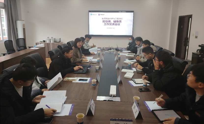 为深化落实立德树人根本任务,强化班导师在学生成长中的引领作用,1 月 13 日上午,学院于 X1408 会议室召开班导师工作交流会。学院党委副书记王燕、副院长邸志雄,班导师谢东、宾诚文、陈健、董金文,朋辈导师及辅导员、教务员共同参会,会议由王燕主持。