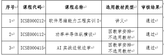 依据《437bwin必赢国际教材管理实施细则》(西交党〔2024〕35号)相关教材选用规定,根据学校教务处《关于开展2024-2025学年第二学期本科教材选用和征订工作的通知》要求,学院教材建设工作组已完成我院2024-2025学年第二学期开课课程的教材选用审核工作,现将审核结果公示如下: